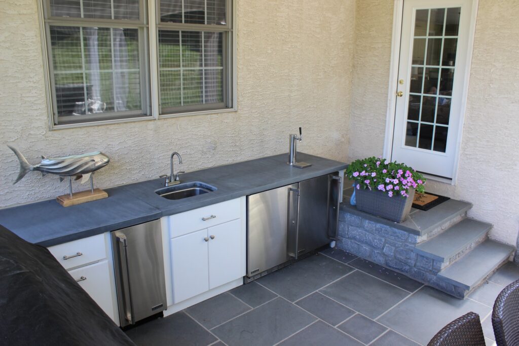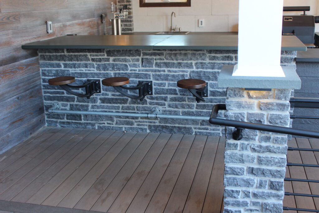 Craft the stone countertop of your dreams from a variety of stock sheet color choices. Blue select stone offers blue and gray options and full color stone offers browns, tans, and blue contrasts throughout. Whether you need a hole for a green egg grill or a smooth top for a pizza grill, you’ll be amazed at what can be accomplished with custom fabrication.